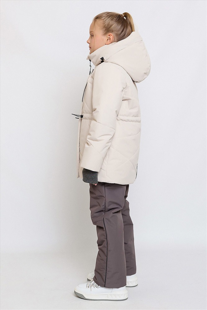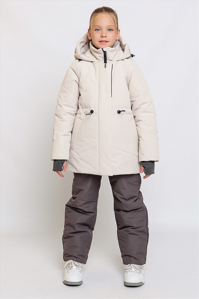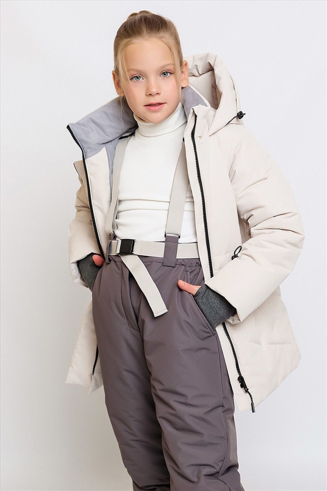 Комплект для девочки зимний Инга в красивой расцветке слоновая кость из мембранной ткани обеспечит защиту от влаги и ветра. Подклад полибрушед делает изделие очень тёплым, хорошо защищающим от ветра и влаги, и при этом лёгким. Куртка регулируется по талии и низу изделия для более комфортной посадки и защиты от поддува. Капюшон втачной с регулировкой и мягкой объёмной лицевой частью. Центральная застёжка на молнию закрыта пластроном с внутренней ветрозащитной планкой и внешней ветрозащитной планкой на магнитах. Большие тёплые карманы, трикотажные манжеты с прорезью под пальчик для большего тепла и удобства, высокий тёплый ворот, светоотражающие элементы по принципу 360 градусов видимости обеспечат безопасность в темное время суток. У брюк съёмные бретели, пояс на резинке, карманы на магнитах, усиление низа кордурой, что даёт высокую устойчивость к истиранию и проникновению влаги.