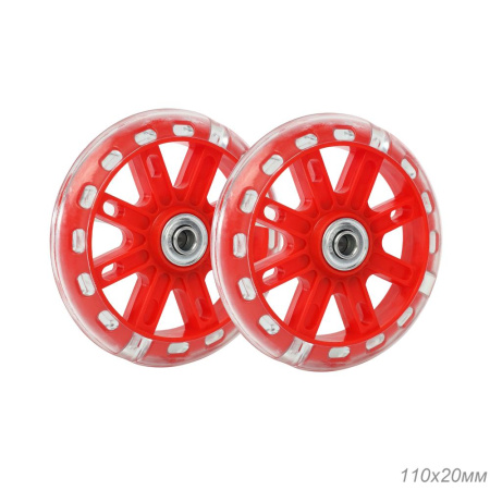 Комплект опорных колес без кронштейна, подшипник, светящиеся колеса Красный 2шт/ HF-042-RE / уп 50