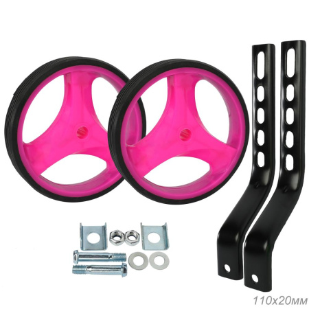 Комплект опорных колес с кронштейнами универсальный 12"-20" пластиковые колеса Розовый 2шт/ HF-007-PI / уп 30