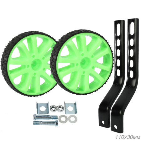 Комплект опорных колес с кронштейнами универсальный 12"-20" пластиковые колеса Зеленый 2шт/ HF-009-GR / уп 25