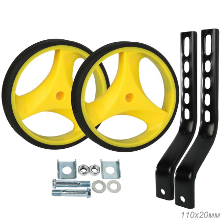 Комплект опорных колес с кронштейнами универсальный 12"-20" пластиковые колеса Желтый 2шт/ HF-007-YE / уп 30