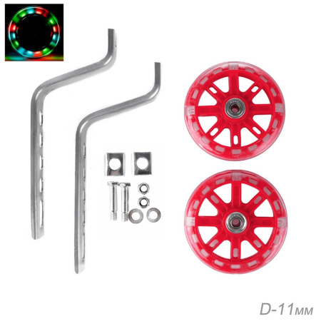 Комплект опорных колес с кронштейнами универсальный 12"-20", подшипник, полиуретановые светящиеся колеса 2шт, Красный / BWWB-12 / уп 50