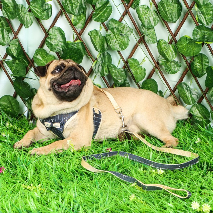 Узор в виде якорей добавляет комплекту морскую тематику и оригинальность, делая его заметным и привлекательным. Этот аксессуар станет отличным дополнением к образу вашего питомца, подчеркнув его силу и грациозность.