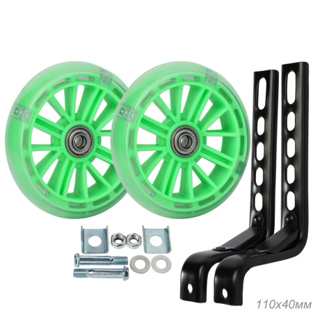Комплект усиленных опорных колес с кронштейнами универсальный 12"-20" пластиковые колеса Зеленый 2шт/ HF-036-GR / уп 25