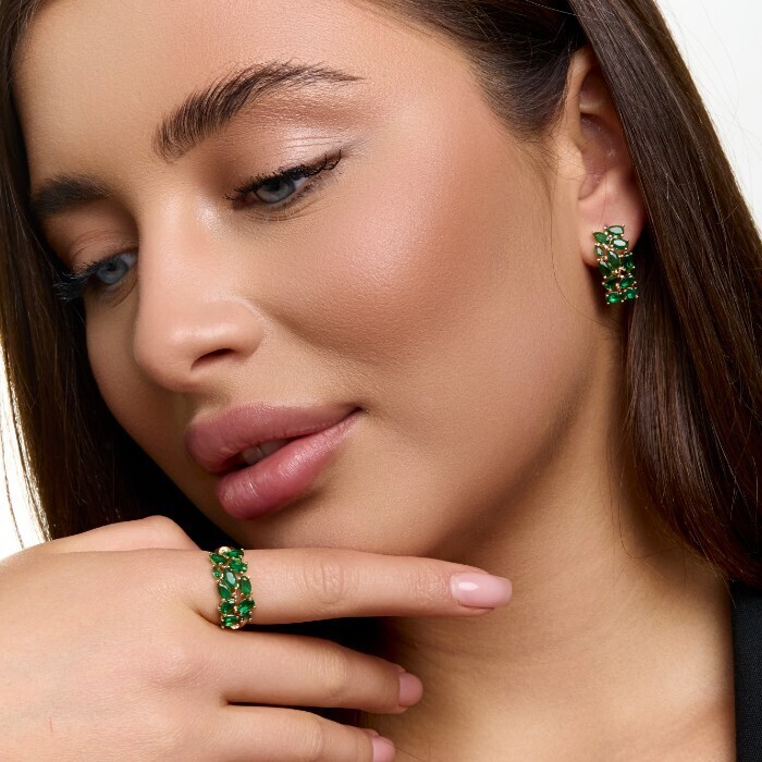 Комплект ювелирной бижутерии коллекция "Дубай" серьги и кольцо 18 р, покрытие позолота, вставка: фианиты, цвет: зеленый, арт.414.587-18