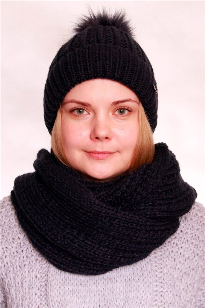 Комплект, состоящий из шапки с помпоном и снуда для женщин.