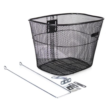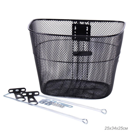 Корзина для велосипеда металлическая, с креплением на переднее колесо под резьбовую вилку. 2 кронштейна на рулевую колонку. Черная. / 1DVMI-1 / уп 40