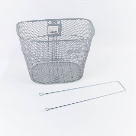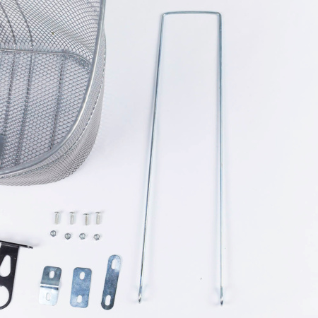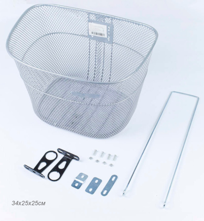 Корзина для велосипеда металлическая, с креплением на переднее колесо под резьбовую вилку. 2 кронштейна на рулевую колонку. Серебро / 1DVMI-3 /уп 40/