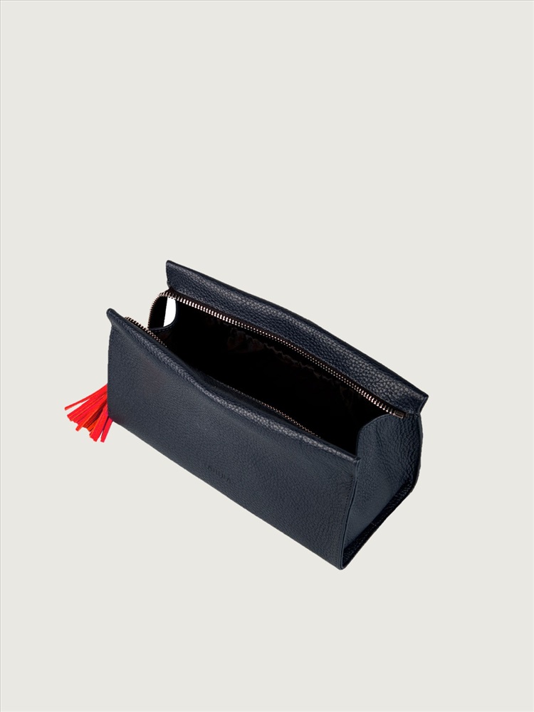 Вместительная функциональная косметичка выполнена из натуральной кожи. Закрывается на металлическую молнию .Внутри 2 накладных кармана и карман на резинке. Отличительная черта: кисточка из кожи .Внешний размер: 215х125х095. Упаковка: Мешок спанбонда.