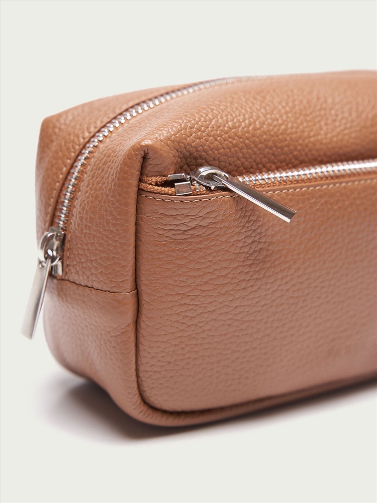 Вместительная косметичка выполнена из натуральной кожи. Основное отделение закрывается на молнию. На внешней лицевой стороне карман на металлической молнии. Цвет фурнитуры:никель. Внутренний материал: микрофибра. Внешний размер: 190х110х075. Упаковка: Мешок спанбонда.