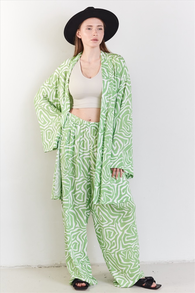 Все изделия имеют безупречный пошив и идеальную посадку. Костюм кимоно с поясом и широкими брюками из 100% вискозы. Свободный крой кимоно и брюк не стесняет ваши движения, брюки с карманами (высокая посадка, на мягкой резинке, ручной работы) не давят и подходят беременным. Костюм идеально садится на любой тип фигуры. Все изделия уникальны и отшиваются небольшими партиями. Стирка изделий вручную либо использовать машинную стирку в деликатном режиме (не более 30 градусов).