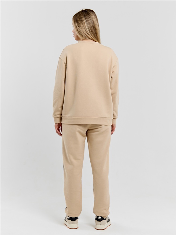 Ткань: Футер 3-х нитка диагональ Костюм молодежный из трикотажного полотна «футер 3-х нитка диагональ» состоящий из джемпера и брюк. Джемпер – прямого силуэта, с длинными втачными рукавами, обработанными манжетами, горловиной овальной формы с втачной планкой и притачным поясом по низу изделия. Полочка и рукава состоят из двух деталей в шве соединения, которых,