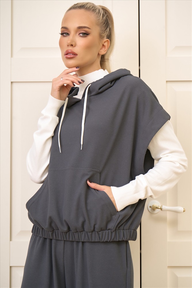Капюшон: Особое внимание привлекает капюшон с уникальной деталью — привлекательными завязками, которые добавляют костюму дерзости и оригинальности.