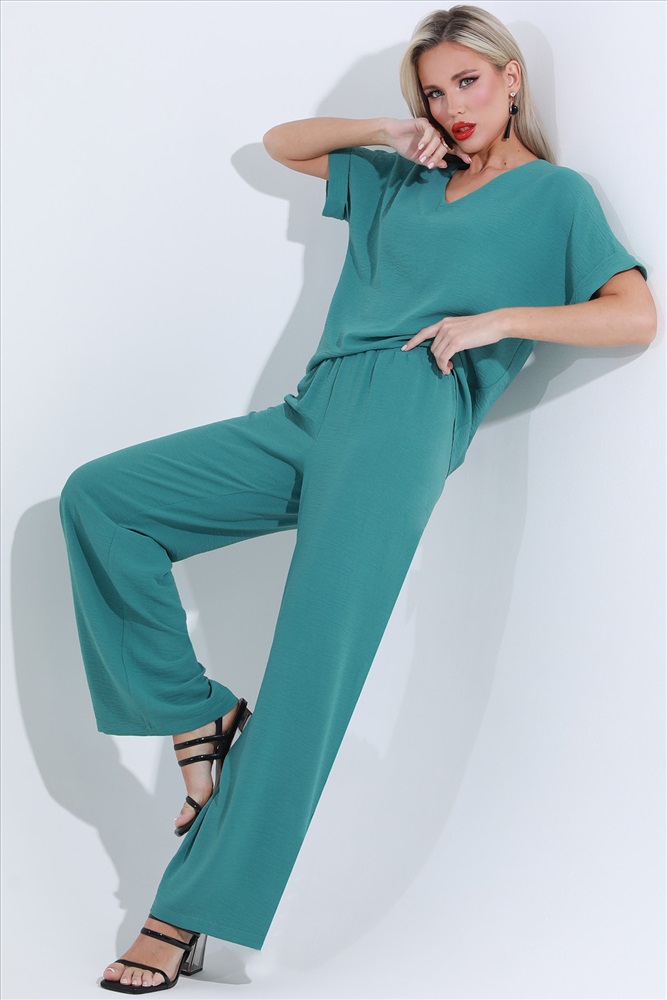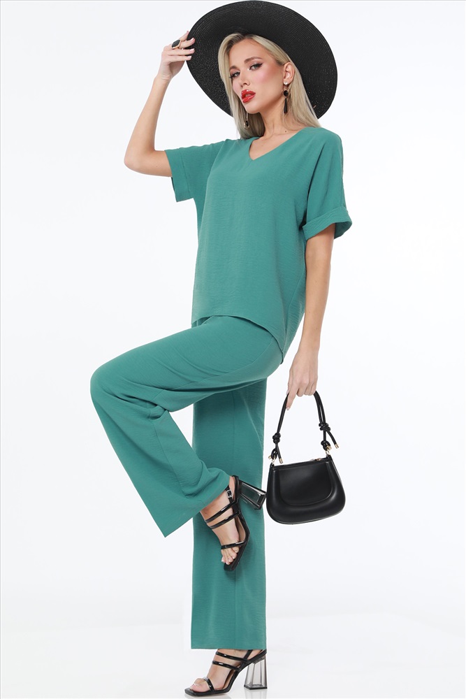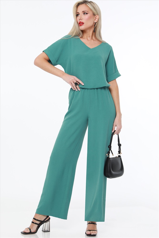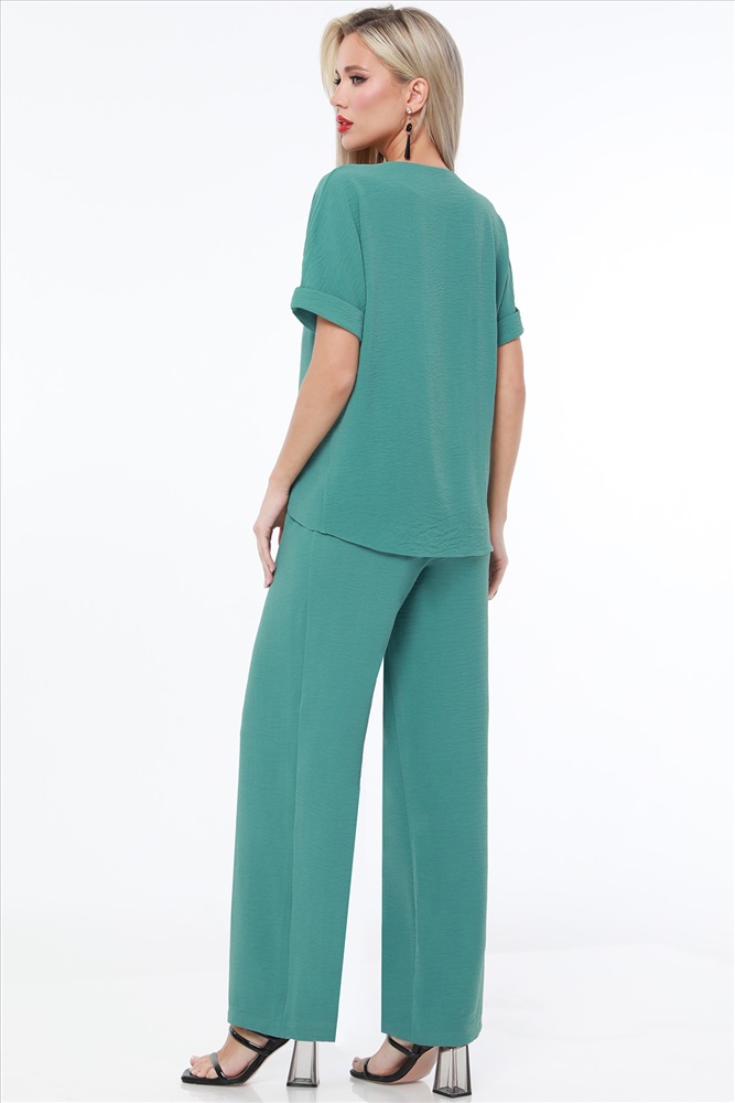Вид застёжки: Без застежки; резинка Вырез горловины: V-образный Длина изделия по спинке: 64 Назначение: Повседневная Тип рукава: Короткий Уход за вещами: Бережная стирка при 30 градусах Фактура материала: Текстильный Состав: 65% полиэстер, 30% вискоза, 5% эластан Тип ткани: Плательно-костюмная Цвет: Серо-зелёный Костюм брючный насыщенного цвета создан для тех, кто ценит комфорт и стиль в летний сезон. Он состоит из двух элементов: брюк и блузки, идеально сочетающихся между собой. Брюки выполнены из плательно-костюмной ткани, которая отличается легкостью и прочностью. Этот материал обеспечивает хорошую вентиляцию, что особенно важно в жаркие летние дни. Брюки на резинке обеспечивают комфортную посадку и удобство в носке. Благодаря эластичному поясу они легко адаптируются к фигуре, не стягивая и не ограничивая движения. Блузка свободного кроя со спущенным плечом придает костюму легкость и непринужденность. Она выполнена из той же плательно-костюмной ткани, что и брюки, обеспечивая единый стиль и гармоничный вид. Свободный крой блузки позволяет коже дышать и создает ощущение прохлады даже в самый жаркий день. Спущенные плечи добавляют образу модный акцент и подчеркивают его расслабленность и стиль. V-образный вырез горловины придает блузке элегантность и женственность. Он визуально вытягивает шею и подчеркивает линию декольте. Этот вырез прекрасно сочетается с различными аксессуарами, такими как цепочки или кулоны, добавляя завершенность образу. Короткие рукава блузки обеспечивают дополнительный комфорт и свободу движений. Для ухода за костюмом рекомендуется бережная стирка при температуре не выше 30 градусов. Это позволит сохранить насыщенность цвета и форму изделий. Используйте мягкие моющие средства и деликатный режим стирки, чтобы избежать повреждений ткани и продлить срок службы костюма. Блузка: 44 размер - 64 см 46 размер - 64 см 48 размер - 65 см 50 размер - 65 см 52 размер - 66 см 54 размер - 66 см 56 размер - 67 см Брюки: 44 размер - 104 см 46 размер - 104 см 48 размер - 105 см 50 размер - 105 см 52 размер - 106 см 54 размер - 106 см 56 размер - 107 см Бережная стирка при 30 градусах Цвет изделия на фотографии может отличаться от фактического товара, что связано с искажением цветопередачи монитором, настройками фотоаппаратуры и прочими факторами Пропорции