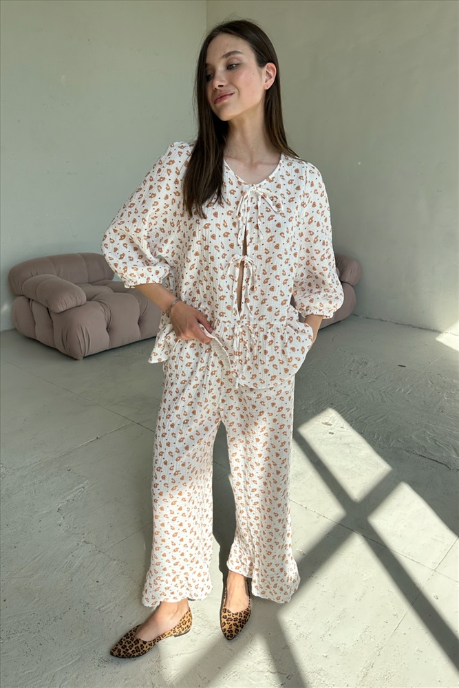 Все изделия имеют безупречный пошив и идеальную посадку. Костюм SET070 блузка с брюками из 100% мягкого хлопка. Свободный крой блузки и брюк не стесняет ваши движения, брюки с карманами (высокая посадка, на мягкой резинке, ручной работы) не давят и подходят беременным. Костюм идеально садится на любой тип фигуры. Все изделия уникальны и отшиваются небольшими партиями. Стирка изделий вручную либо использовать машинную стирку в деликатном режиме (не более 30 градусов).