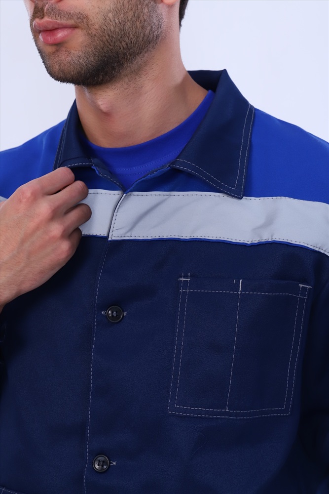 Состав: смесовая (65% п\э, 35% х\б), пл. 210 гр. Модель: Костюм мужской Легион 2 Тип товара: костюм с брюками Материал: полиэстер | хлопок стрейч | хлопок стрейч | полиэстер Бренд: Стоик спецодежда Карман: накладные Отделка: с карманами | с манжетами Рисунок: колорблок Рукав: длинный рукав Сезонность: лето Силуэт: прямой Стиль: спецодежда Воротник: рубашечный воротник Застежка: молния | пуговицы Защитный костюм для профессионалов - это легкая и удобная рабочая спецодежда для мужчин. Специальная одежда обеспечит комфорт и безопасность в работе в соответствии с ГОСТ. Новинка в категории мужская одежда - выполнена из плотного материала, который не сковывает движения. Он создает водонепроницаемый эффект, в том числе отталкивает грязь . Спецовка не вытягивается, то есть держит форму. Костюм с брюками прост в уходе, а именно стойко переживает частые стирки. При носке спецодежда не мнется, ведь ее удобно хранить и носить с собой. В составе есть хлопок. Куртка укороченная, с притачным поясом. Центральная бортовая застежка на петли и пуговицы. Воротник отложной. Один нагрудный накладной карман с отделением для ручки. Два нижних накладных кармана с наклонным входом. Рукава с манжетами, застегивающимися на пуговицу, с налокотниками. Притачной пояс с участками эластичной тесьмы по бокам. По шву притачивания кокетки и по рукавам СОП 50 мм. Брюки с притачным поясом, с застежкой гульфика на тесьму молния и одну пуговицу на поясе, пять шлевок. Два накладных кармана с наклонным входом. Наколенники, по низу брюк СОП 50 мм. Таблица размеров и весакуртка