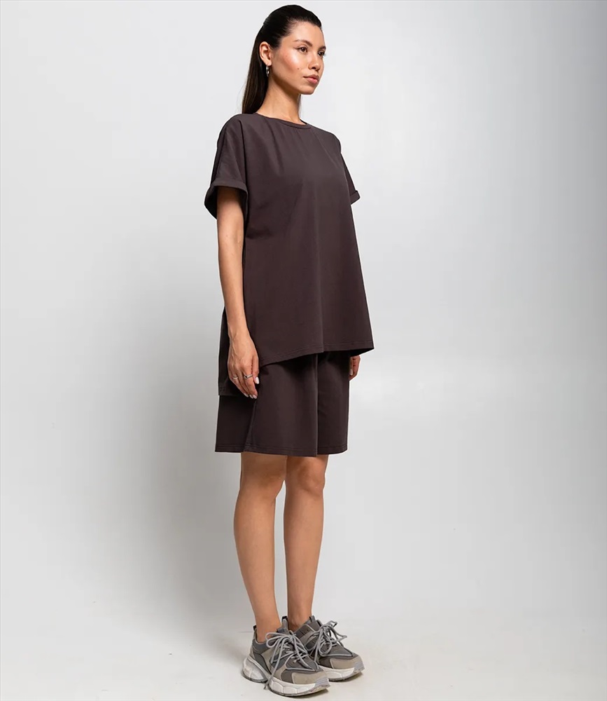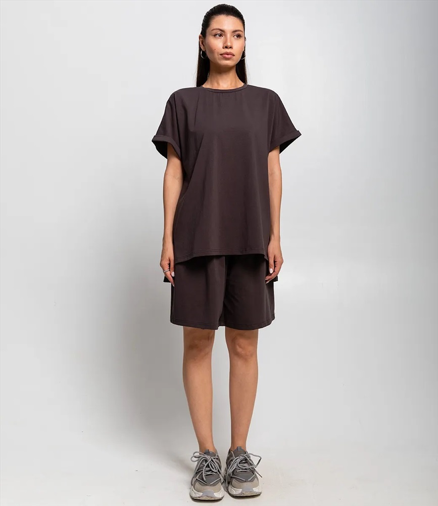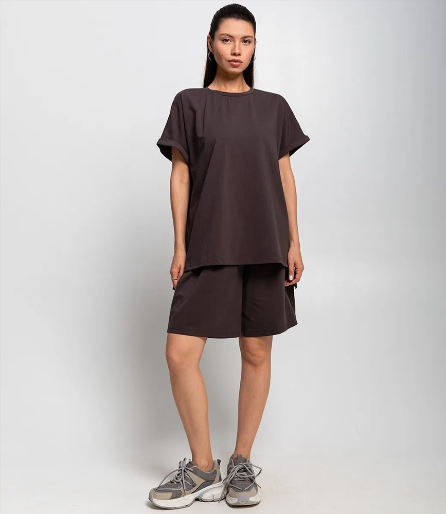 Пол: Женский Страна производитель: Китай Сезон: Лето Материал: Эластан, Полиэстер Костюм – это эффектная часть гардероба, подчеркивающая женственность и уникальность каждой представительницы прекрасного пола. Костюм состоит из двух частей — свободной футболки и шорт, выполненных в спокойном темно-коричневом цвете. Футболка имеет классический круглый вырез и рукава средней длины с подворотом, а шорты достигают средней длины на бедрах, обеспечивая комфорт и свободу движений. Основной материал костюма — 95% полиэстер и 5% эластан. Для уверенности в размере мы представили на странице таблицу, чтобы вы могли самостоятельно обмерить себя и убедиться в идеальной посадке костюма. Предложенная нами цена является приемлемой, что делает этот комплект отличным выбором для оптовых покупателей. Не упустите возможность предложить вашим клиенткам этот стильный костюм, который станет их любимым выбором для летних дней! Позвольте вашим покупательницам наслаждаться комфортом и элегантностью с этим великолепным комплектом! Рост модели 164 см., 83-61-89. Комментарии к товару