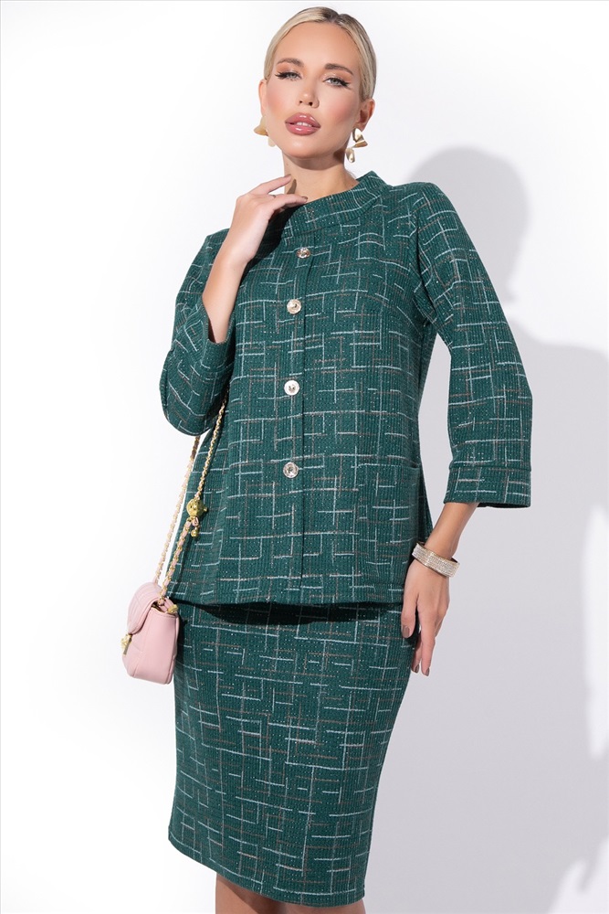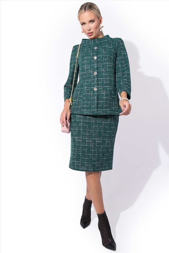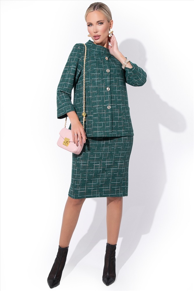 Все смотрят на тебя и восхищаются! Костюм женский, юбочный, стильный, трикотажный. Комплект с юбкой представляет собой элегантный и стильный наряд, как для любого торжества, так и для деловой встречи. Благодаря трикотажу высокого качества, этот костюм создаст максимальный комфорт. Туника – рукав 7/8 на манжете, ворот- глубокая стойка, имитация застежки, пуговицы. Юбка – талия на резинке..