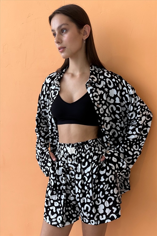 Все изделия имеют безупречный пошив и идеальную посадку. Костюм SET003 рубашка удлиненная с шортами из 100% вискозы. Свободный крой рубашки и шорт не стесняет ваши движения, шорты с карманами (высокая посадка, на мягкой резинке, ручной работы) не давят и подходят беременным. Костюм идеально садится на любой тип фигуры. Все изделия уникальны и отшиваются небольшими партиями. Стирка изделий вручную либо использовать машинную стирку в деликатном режиме (не более 30 градусов).