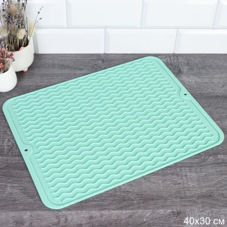 Коврик для сушки посуды 40х30 см силиконовый/ S-241-573 /уп 65/ 0,207/ Мятный