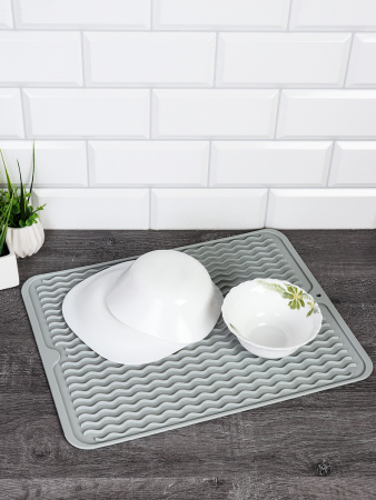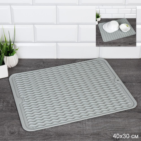 Коврик для сушки посуды 40х30 см силиконовый/ S-241-643 /уп 30/ Серый