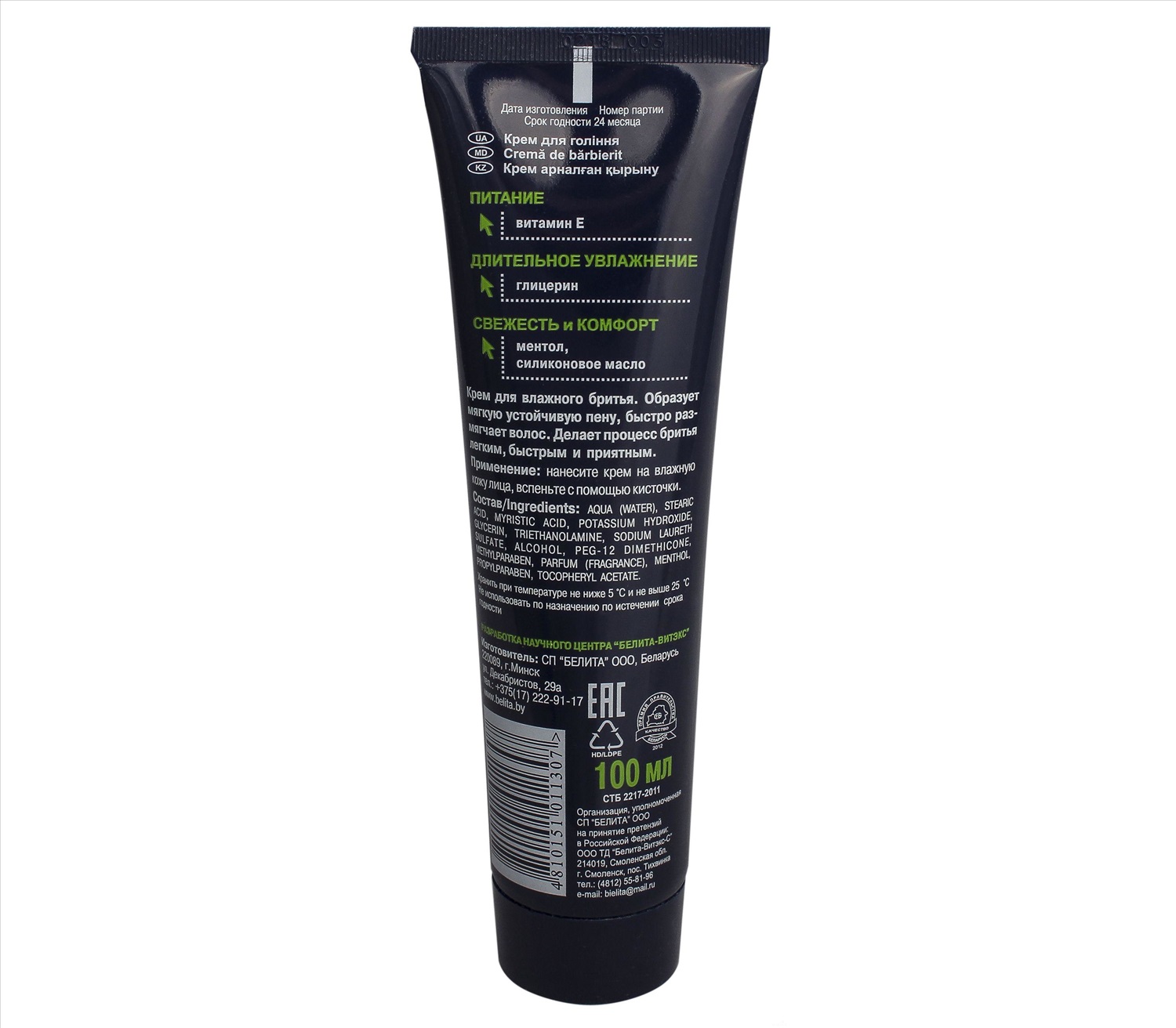 Бренд: Белита; Все товары: Топ подарков для мужчин; Изготовитель: СП "Белита" ООО, Республика Беларусь, 220089, г. Минск, ул. Декабристов, 29а; Назначение: Для бритья; Производитель: Белита; Свойства: Увлажнение, питание; Серия: Bielita for Men