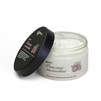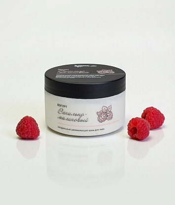 ЙОГУРТ для тела ВАНИЛЬНО-МАЛИНОВЫЙ - натуральный лёгкий крем ламеллярной структуры, имеющей биологическое сходство с липидами клеток кожи, способствует её оптимальному увлажнению, восстановлению, дарит бархатистость, мягкость и нежность прикосновения.