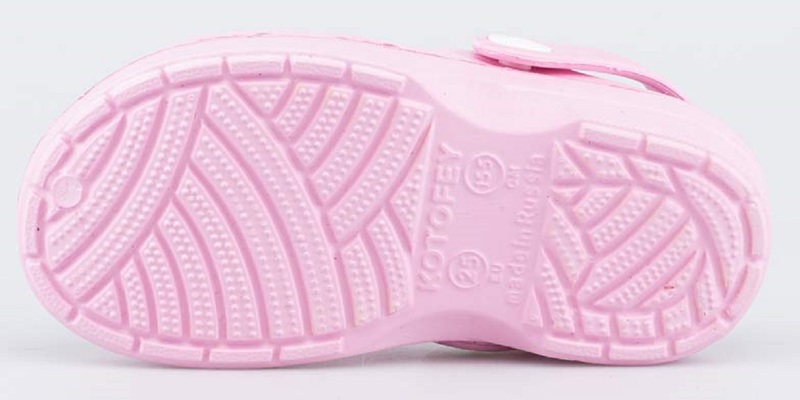 Материал верха: ЭВА Пол: Девочки Материал подклада: Без подклада Материал верха: ЭВА Материал подклада: Безподклад Материал подошвы: ЭВА Полнота: 3 Цвет: Розовый Страна: Россия Обувь полностью выполнена из материала ЭВА (этиленвинилацетата) - очень лёгкого, гибкого, эластичного и амортизирующего. Он быстро сохнет и его легко мыть. Закрытый носок защищает пальцы от горячего песка и камней, при этом перфорация позволяет стопе \'дышать\'. Внутренняя анатомическая форма модели повторяет форму стопы. Сделано в России. Комментарии к товару