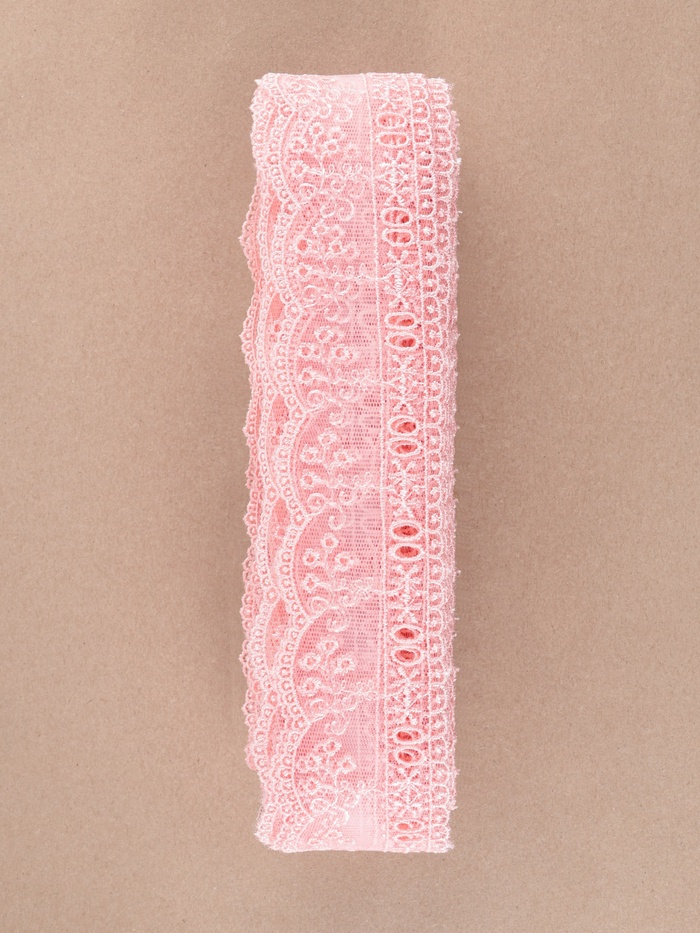 Создайте атмосферу нежности и элегантности с розовым кружевом на сетке. Ажурное исполнение и нежный розовый цвет добавят изысканности и легкости вашим тканевым проектам, будь то одежда, аксессуары или декор.