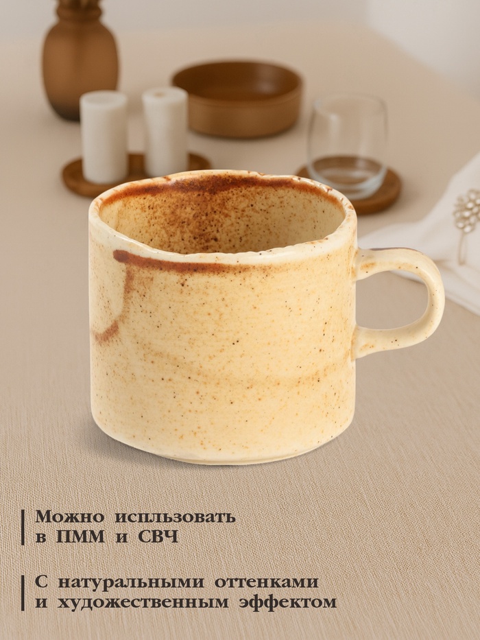 Эта бежевая фарфоровая кружка – это не просто посуда, а элемент стиля, который подчеркивает вашу индивидуальность. Насладитесь каждым глотком любимого напитка и ощутите гармонию.