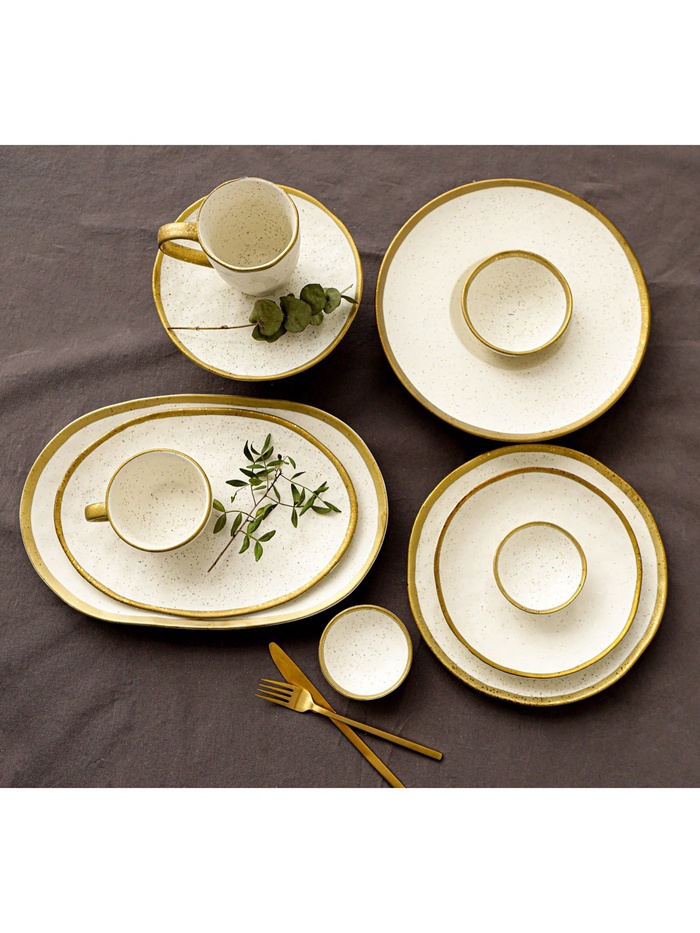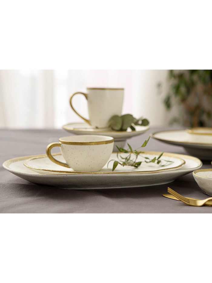Посуда серии Magistro Poursephona — это современная фарфоровая посуда. В оформлении серии превалируют два цвета – бежевый оттенок фарфора и роскошное золото в виде широкой окантовки предметов. Идеально подходит как для формального обеда, так и для торжеств по особым случаям. Лаконичные формы, золотая окантовка, разноцветные вкрапления придают изделиям из фарфора одновременно необычный и современный вид.
