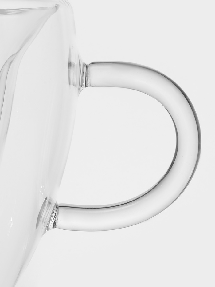 Вся посуда с двойными стенками делается вручную и имеет на дне технологическое отверстие, через которое и выдувается изделие. Далее отверстие заклеивается – это особенность, которая не является браком. Посуду нельзя использовать в ПММ и СВЧ-печи.