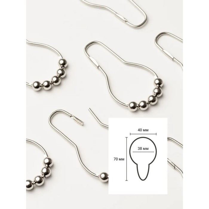 В комплекте вы получите 12 стильных и удобных колец для штор в ванной.