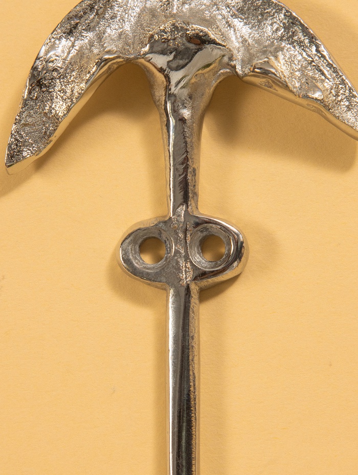 Габариты: 28 x 9 x 6,5; Страна: Индия; В боксе: 24 шт; Состав: Алюминий; Материалы: алюминий; Фасовка: по 2 шт; Индивидуальная упаковка: Пакет; Габариты товара: 9 см × 6,5 см × 28 см; Сертификат: Не подлежит сертификации; Цвет: Серебристый; Количество крючков: 1; Количество рожков: 1; Тематика: Морская тематика; Материал: Алюминий; Цвет: Серебро; Особенности: Фигурная