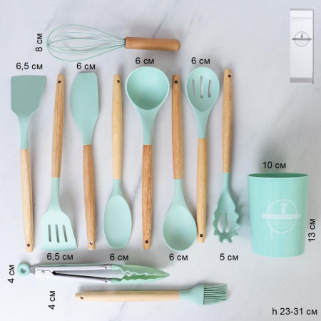 Кухонный набор 12 предметов в подставке / NA-141 /уп 16/ 0,78/ 0,69/ Бирюзовый