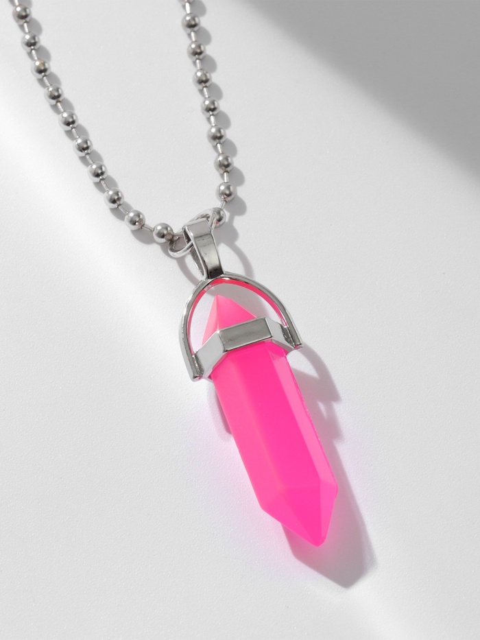 Производитель: QF; Габариты: 12 x 8 x 1; Страна: Китай; В боксе: 180 шт; Состав: Полистоун, бижутерный сплав; Материалы: полистоун, бижутерный сплав; Фасовка: по 6 шт; Индивидуальная упаковка: Пакет (БОПП, полиэтилен, ПВХ, дой-пак); Габариты товара: 40 см × 4,5 см × 1 см; Сертификат: Не подлежит сертификации; Набор: Нет; Цвет: Розовый; Для кого: Для женщины; Длина, см: 40; Цвет фурнитуры: Серебряный; Вставка/Подвеска: Полистоун; Основа для кулона: На декоративной основе; Материал основы: Металл; С подвеской: Да; Вид застёжки: Складная застёжка; Тематика: Яркая, Каменная; Многослойное украшение: Нет