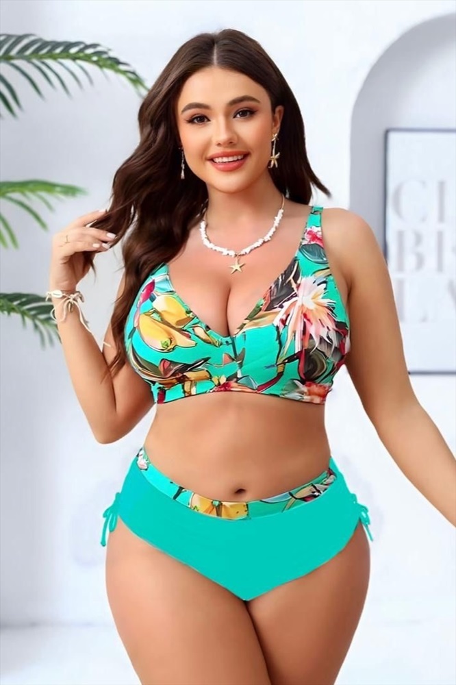 Раздельный купальный костюм из мягкого эластичного материала. Бюстгальтер с мягкой чашкой, которая дублирована эластичной подкладочной тканью, благодаря чему модель не вытягивается, не просвечивается и плотно облегает грудь. Глубокие чашки оформлены по низу каркасами, что хорошо поддерживает грудь и придает ей красивую форму. Боковые детали стана усилены упругой боковой пластиной, что не позволяет ткани скатываться во время носки. Мягкие бретели регулируются по длине металлическими пряжками. Низ комплектуется трусиками, которые дублированы мягкой подкладочной тканью. С помощью оригинальных драпировок по бокам можно регулировать объем выреза. Трусики можно носить как на бедрах, так и на высокой посадке. Оригинальный принт верха добавляет динамичности, а однотонный низ освежает образ. Эластичный материал обеспечивает комфорт и свободу движения. В этом формирующем фигуру купальнике вы наилучшим образом продемонстрируете свою элегантность и чувство стиля. (Материал устойчив к воздействию хлора. Чтобы сохранить первоначальный цвет и вид купальника, рекомендуем деликатную ручную стирку при температуре не более 30 градусов)
