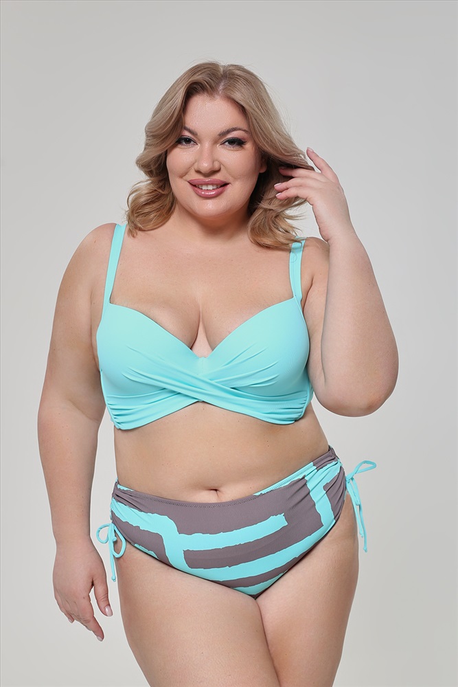 Раздельный купальный костюм из мягкого эластичного материала. Бюстгальтер с мягкой чашкой, которая дублирована эластичной подкладочной тканью, благодаря чему модель не вытягивается, не просвечивается и плотно облегает грудь. Глубокие чашки оформлены по низу каркасами, что хорошо поддерживает грудь и придает ей красивую форму. Боковые детали стана усилены упругой боковой пластиной, что не позволяет ткани скатываться во время носки. Мягкие бретели регулируются по длине металлическими пряжками. Низ комплектуется трусиками, которые дублированы мягкой подкладочной тканью. С помощью оригинальных драпировок по бокам можно регулировать объем выреза. Трусики можно носить как на бедрах, так и на высокой посадке. Эластичный материал обеспечивает комфорт и свободу движения. В этом формирующем фигуру купальнике вы наилучшим образом продемонстрируете свою элегантность и чувство стиля. (Материал устойчив к воздействию хлора. Чтобы сохранить первоначальный цвет и вид купальника, рекомендуем деликатную ручную стирку при температуре не более 30 градусов)