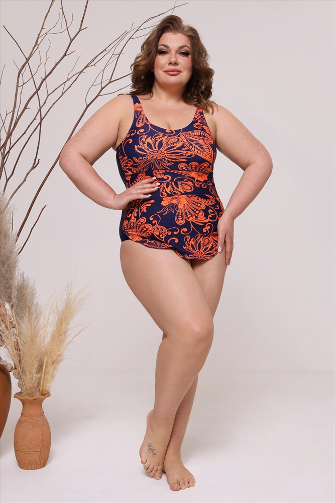 Фасон: Купальник Материал: Полиамид, эластан Параметры модели: Рост 173 см, Размер 54 Купальник цельный "Цветочные узоры" синий с оранжевым Купальник «свим-дресс» — модный вариант для тех, кто хочет создать интригующий и образ, и при этом скрыть недостатки фигуры. Благодаря глубокому U-образному вырезу спинки и широким бретелям, этот купальник обладает возможностью комфортного надевания и отличной фиксацией на теле. Лиф дублирован подкладкой из мягкой микрофибры и имеет поролоновые чашечки. Резинка по низу красиво обрамляет грудь и обеспечивает хорошую поддержку. Модель имеет классический вырез бёдер, который способствует оптимальной посадке по фигуре. Завышенная линия талии формирует легкий А-образный силуэт платья, под которым скрываются трусики. Оригинальная драпировка сбоку искусно обыгрывает область талии и живота. Яркий растительный принт добавляет динамичности. Эластичный материал обеспечивает комфорт и свободу движения. В этом формирующем фигуру купальнике вы наилучшим образом продемонстрируете свою элегантность и чувство стиля. (Материал устойчив к воздействию хлора. Чтобы сохранить первоначальный цвет и вид купальника, рекомендуем деликатную ручную стирку при температуре не более 30 градусов) Комментарии к товару