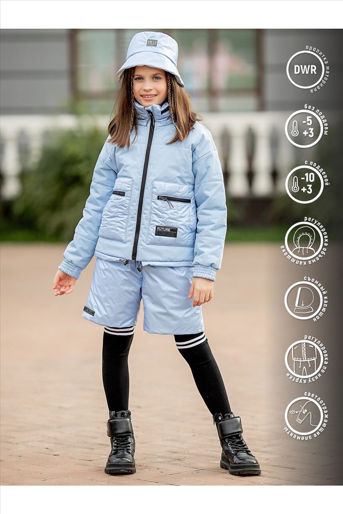 ID товара: 1035405 Сезон: Демисезон Длина: Средняя Фасон: Прямой Рукав: длинные Вид застежки: Молния Тип карманов: Накладные Декоративные элементы: С капюшоном Утеплитель: с утеплителем, 150 гр Стиль: повседневный Реком. темп. режим: до -5ºС Страна бренда: Россия Страна производства: Россия Куртка для девочки Вера демисезонная голубая с утеплителем. Материал с ветро- и водоотталкивающим покрытием. Украшена нашивками с надписями. Съемный капюшон регулируется с помощью шнурка-кулиски со стопперами. Центральная застежка на молнию с защитой подбородка. Особенности: