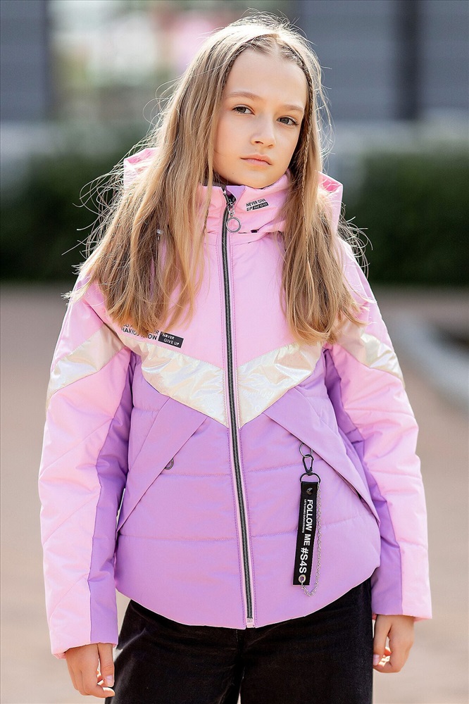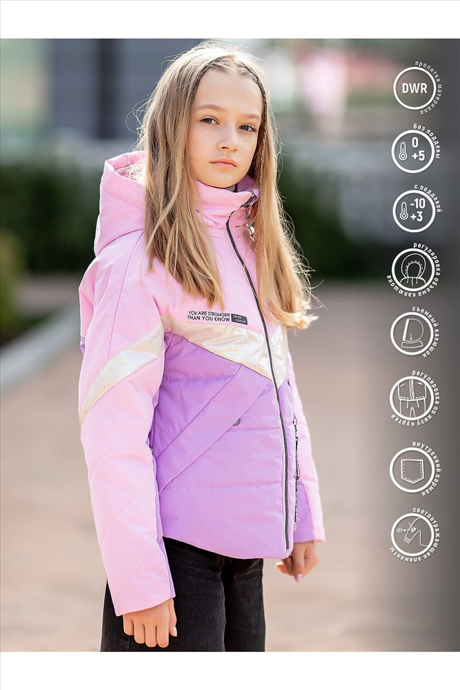 ID товара: 1035408 Сезон: Демисезон Длина: Средняя Фасон: Прямой Рукав: длинные Вид застежки: Молния Тип карманов: Прорезные Декоративные элементы: С капюшоном Утеплитель: с утеплителем, 100 гр Стиль: повседневный Реком. темп. режим: до 0ºС Страна бренда: Россия Страна производства: Россия Стильная куртка для девочек Канди эргономичного кроя. Выполнена в нежно-сиреневой палитре цветов с перламутровой вставкой. Регулировка объёма капюшона, низа куртки и водоотталкивающая пропитка ткани обеспечат надежную защиту и комфорт в любую непогоду. Спереди прорезные карманы на молнии, а сама модель дополнена светоотражающими элементами. Особенности: