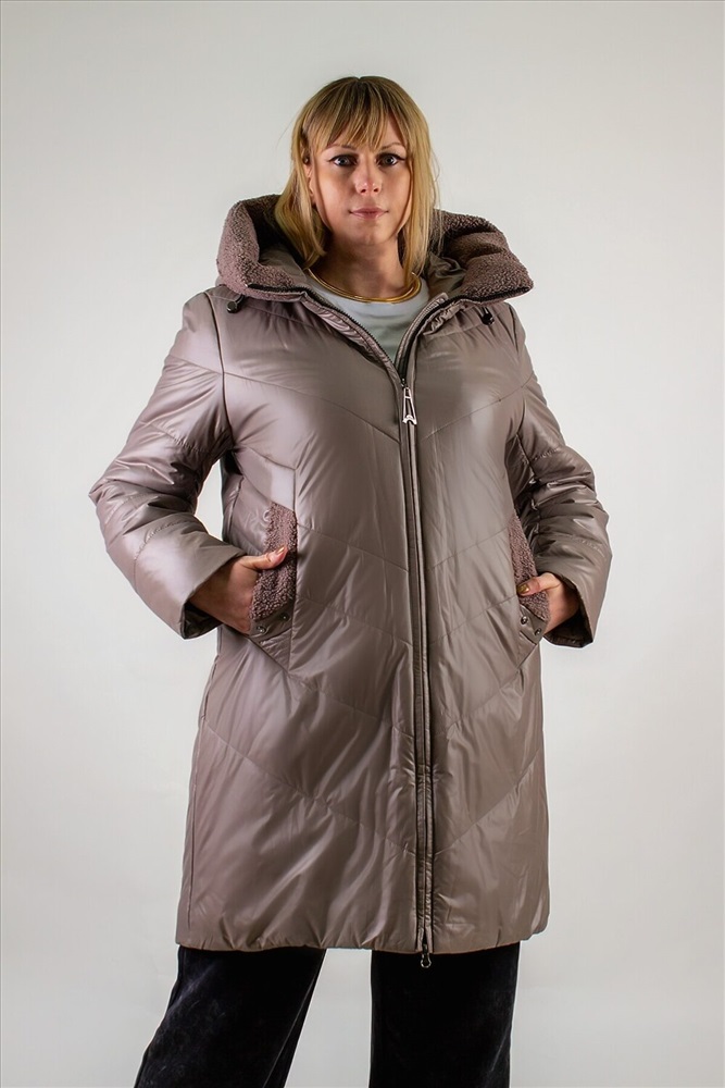 Зимняя куртка удлиненная с верблюжьей шерстью арт.219 - элегантная и предельно функциональная зимняя куртка удлинённого кроя идеальный выбор для суровых морозов до 30 C, оставаясь при этом легкой. Длина изделия 92 см надежно защищает от ветра и холода поясницу и бёдра, а толстый слой наполнителя из верблюжьей шерсти обеспечивает оптимальный микроклимат, превосходно удерживая тепло и отводя излишки влаги. Объёмный капюшон с воротником-стойкой на фиксаторах комфортно регулируется по объёму и защищает не только голову, но и шею от сильного ветра. Эстетичную отделку составляют в тон изделию декоративные карманы и опушка капюшона из мелкого искусственного барашка лёгкая, гипоаллергенная и практичная альтернатива натуральному меху. Куртка застегивается на двухзамковую молнию с внутренней ветрозащитной планкой: при необходимости верхний и нижний замки позволяют регулировать свободу движений при ходьбе или за рулём. Оригинальный косой стёжок гарантирует равномерное распределение наполнителя по всему объёму изделия, исключая пробелы и холодные зоны. Для удобства в повседневной эксплуатации предусмотрены два боковых кармана на кнопках, куда легко спрятать перчатки или мелкие личные вещи, а также внутренний карман для телефона или кошелька. Манжеты из мягкого трикотажа плотно облегают запястья, не пропуская холодный воздух внутрь рукавов. Мы предлагаем эту модель в трёх актуальных цветах: тёплый коричневый, графитовый и бирюзовый. Полиэстеровая ткань с лёгкой глянцевой фактурой не впитывает влагу и легко очищается от грязи, уличной соли или шерсти домашних животных. Высококачественный пошив, прочная фурнитура и внимание к деталям делают зимнюю куртку арт.219 вашим надёжным спутником в самые лютые морозы и стильным акцентом в холодное время года. Приобретая эту модель, вы получаете сочетание комфорта, функциональности и современного дизайна, которое будет радовать вас долгие сезоны.