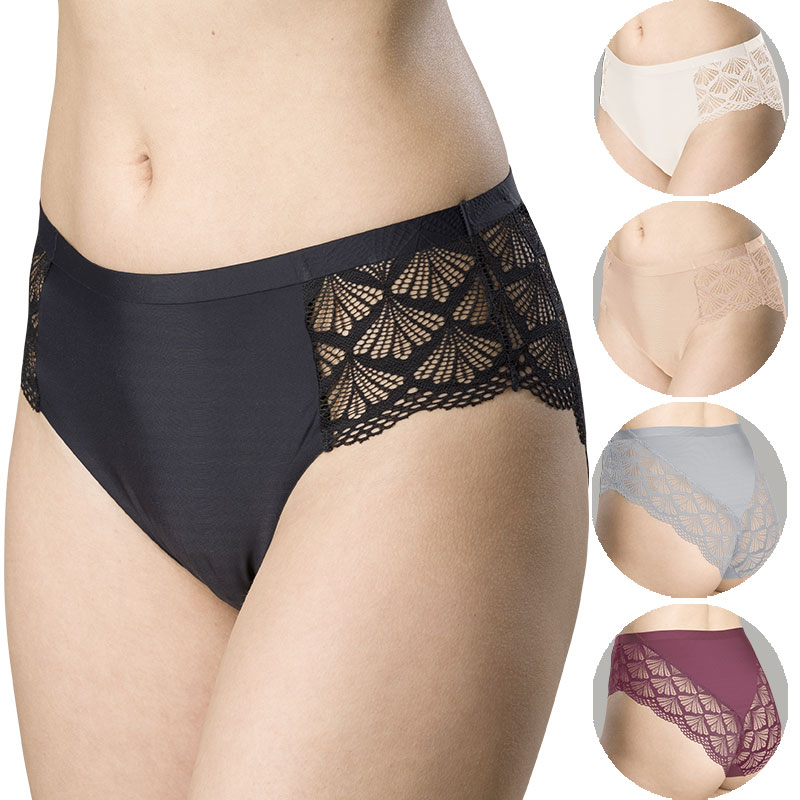 Состав: 92%полиамид 8%эластан, вставка: 90%полиамид 10%эластанОписание: Женские кружевные трусы-слипы с высокой посадкой для влюбленных в красивый образ жизни. Трусики изготовлены с минимумом швов. Кромки по ноге и по талии подогнуты и приклеены, хлопковая приклеенная ластовица. Продуманный крой трусов создает изящный силуэт. Эластичная и мягкая ткань позволяет избежать натираний и неудобств, кожа дышит. Кружево с фестонным краем подчеркивает изящные линии тела и придает модели романтичные нотки. Нежный кружевной узор придает женственности и изысканности. Вы можете создавать разные образы по настроению - от повседневных и классических, до соблазнительных. Трусы представлены в универсальных цветах - черный, молочный, серый и пудра для консервативных девушек, а также в трендовом бордовом цвете для модниц. Широкий размерный ряд XS(42): S(44): M(46): L(48) для девочек-подростков, девушек и женщин. Для круглогодичного применения: летом, осенью, зимой, весной и демисезон. Отличный подарок подруге, сестре, маме на любой праздник или на День рождения. Выбирайте нужный размер по таблице размеров на фото. Цвет товара на экране вашего устройства может отличаться от цвета изделия вживую. Товар возврату и обмену не подлежит.