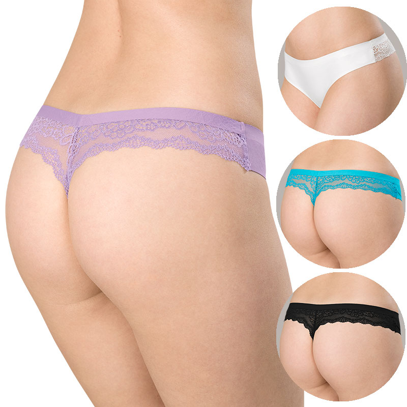 Состав: 92%полиамид 8%эластан, вставка: 85%полиамид 15%эластанОписание: Женские трусы-стринги с низкой посадкой. Изготовлены по бесшовной технологии с минимум швов. Кромки по ноге и по талии подогнуты и приклеены, хлопковая приклеенная ластовица. Нежное цветочное кружево придает модели утонченный вид. Модель оценят те, кто ищет незаметное и невесомое белье на каждый день или особого случая.