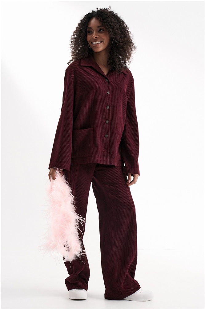Брюки на поясе с резинкой. Передние половинки с наклонными карманами к боковым швам.