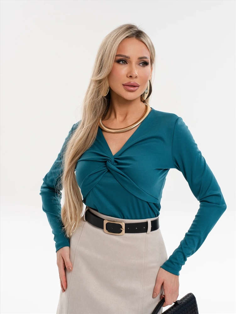 Длинный втачной рукав. V-образный вырез. Впереди блузка декорирована крестовым перехлестом. Комментарии к товару