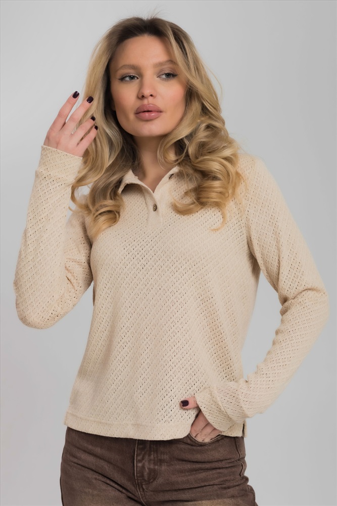 Застежка: Пуговицы С капюшоном: Нет С карманами: Нет Сезон: Всесезонный Силуэт: Прямой Состав: Полиэстер 50% Вискоза 50% Цвет Номенклатуры: бежевый Футболка-поло выполнена из трикотажного полотна фирузе. Длинный рукав на манжете, воротник с застёжкой на две пуговицы. По бокам разрезы. Размерный ряд: 42-56. Комментарии к товару