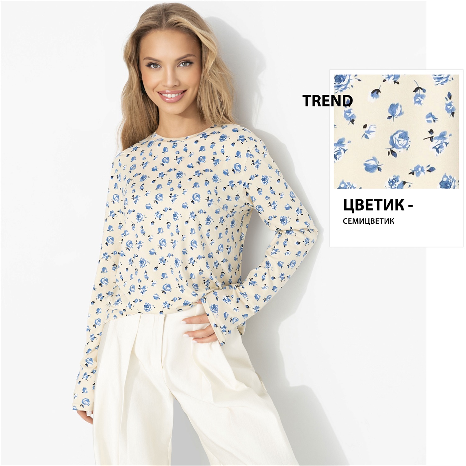 Тренд сезона – new romantic minimal: лёгкость, чистые оттенки и деликатные принты, которые создают настроение без перегруза. Этот лонгслив попадает точно в волну, которую показывали в своих коллекциях Chloé и Zimmermann. Нежный цветочный рисунок звучит свежо, тонкий трикотаж мягко облегает, вискоза дарит пластичность, эластан – комфорт. Вау-эффект здесь не в громкости, а в том, как тонко работает красота. Комментарии к товару