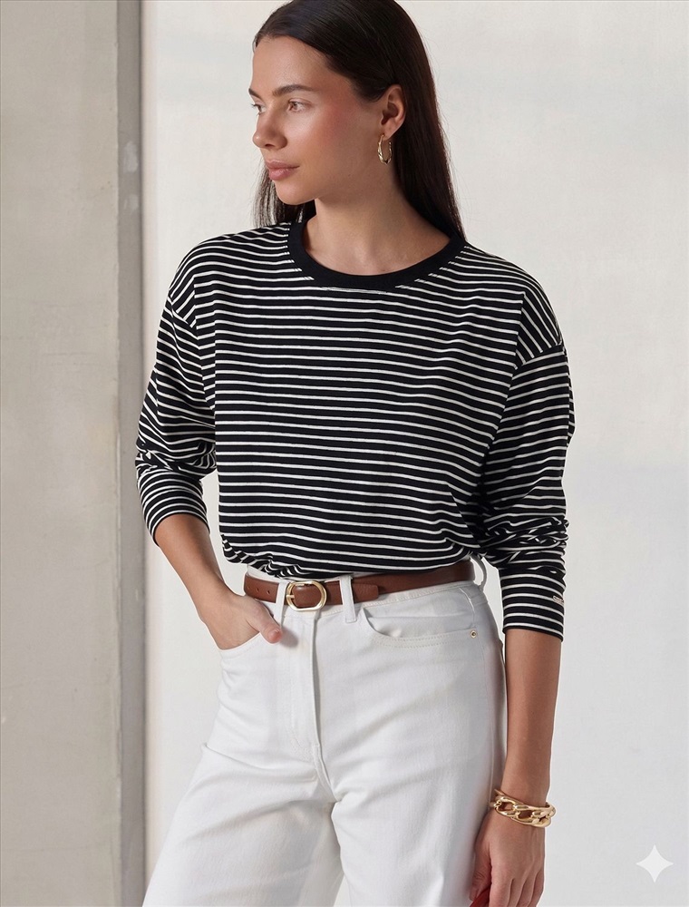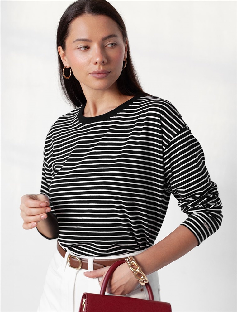 Плотность: 170 Г/м2 Свободный лонгслив в черно-белую полоску с длинным рукавом выполнен из премиального хлопка с добавлением эластана, плотностью 170 Г/м2, что обеспечивает комфорт и приятные тактильные ощущения. Полоска - придает изделию легкую текстурность и стильный вид, а круглый ворот создает универсальный образ, который подойдет для повседневного использования. Такой лонгслив идеально подходит для весеннего и летнего сезона благодаря легкой и дышащей ткани. Представленная широкая размерная линейка позволяет выбрать оптимальный вариант на любую фигуру, в том числе на плюс-сайз, обеспечивая свободу движений и удобство на каждый день. Этот комфортный лонгслив станет отличной базой в гардеробе, сочетаясь с различными стилями одежды и создавая простой, но эффектный образ. Комментарии к товару