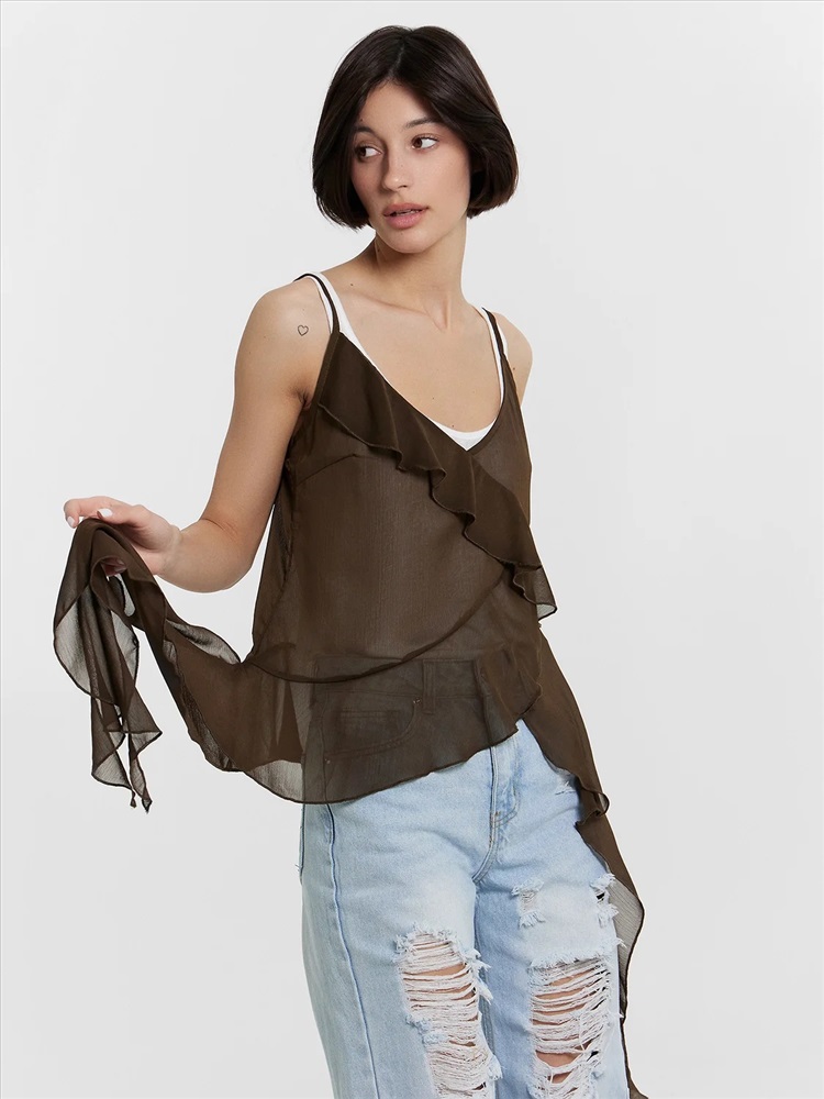 Рост: 170 Эта стильная новинка в весенне-летней коллекции — воплощение легкости и трендового дизайна! Асимметричный крой придает модели динамичность и оригинальность, создавая непринужденный, но эффектный силуэт. Свободный фасон обеспечивает комфорт и воздушность, а V-образный вырез подчеркивает элегантность и утонченность образа. Тонкие бретели делают изделие легким и женственным, а изящные оборки добавляют романтичность и игривость, подчеркивая плавность линий. Модель выполнена из струящегося материала, который красиво ложится по фигуре, создавая ощущение свободы и легкости. Такой дизайн идеально подходит для стильных летних образов, подчеркивая индивидуальность и акутальные акценты сезона. Этот трендовый топ легко комбинируется с аксессуарами, обувью и верхней одеждой, позволяя создавать уникальные и выразительные луки. Безупречное сочетание утонченности, комфорта и свежего взгляда на стиль!